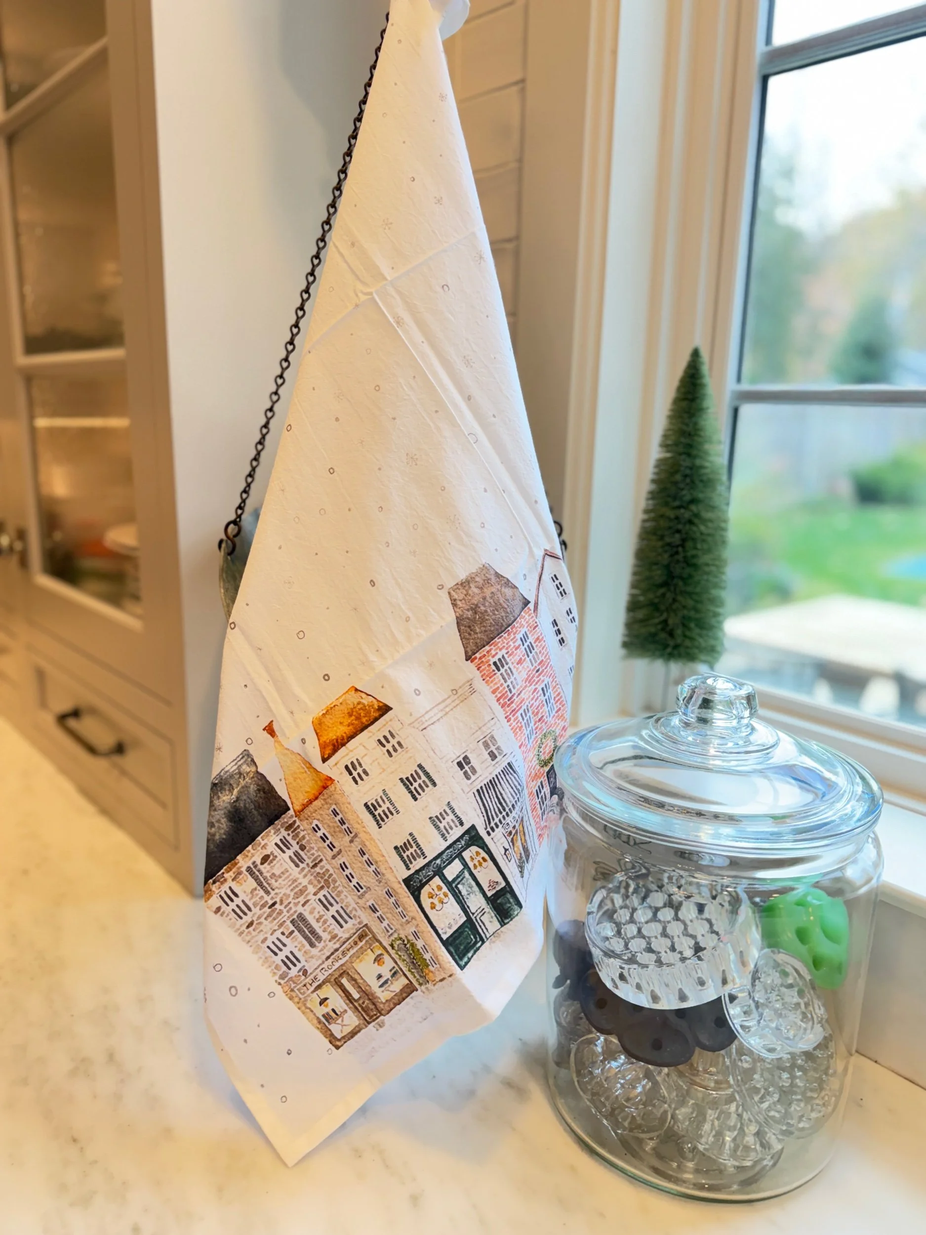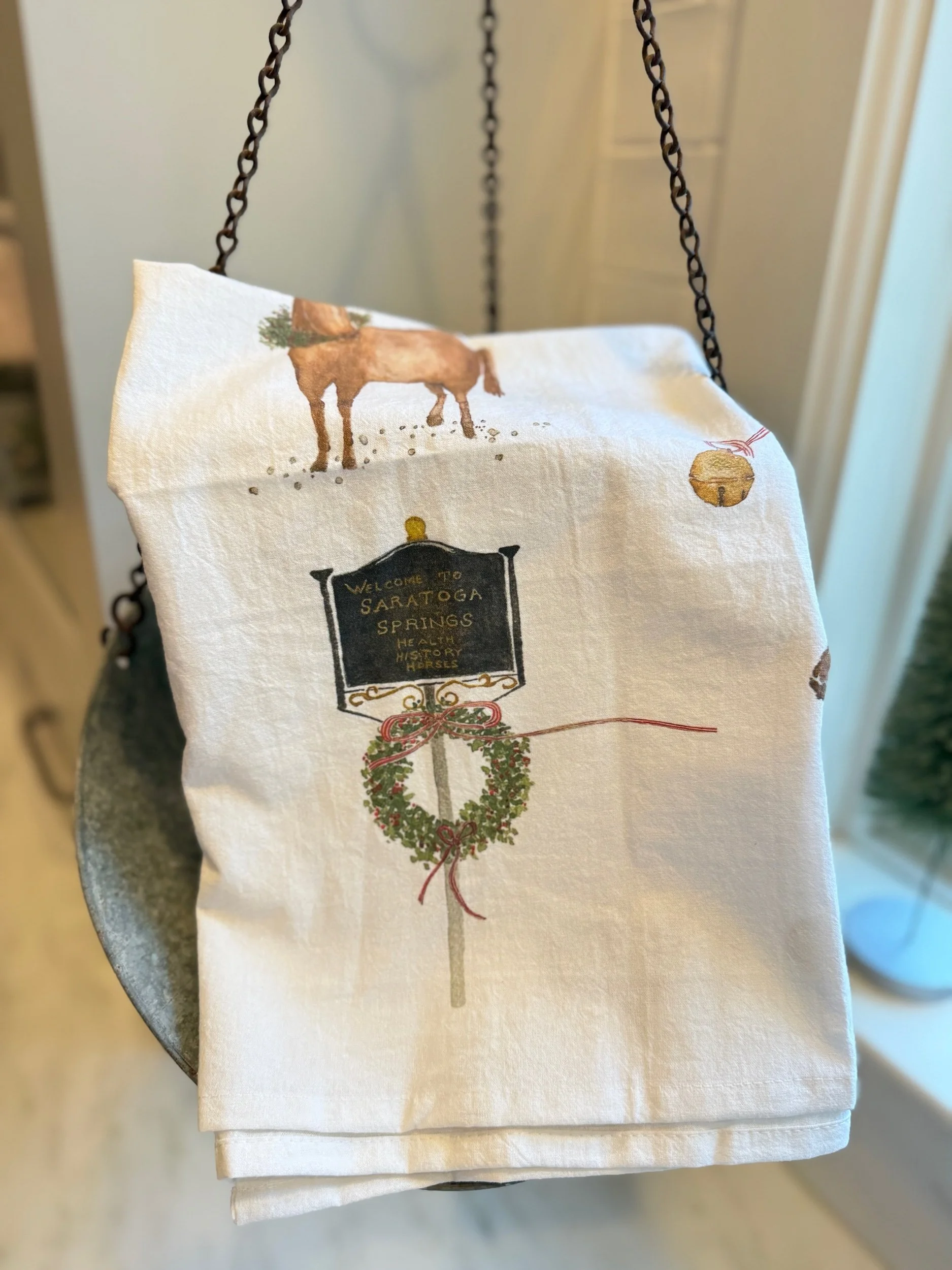 This classic downtown Saratoga inspired scene is a classic! The original work for this towel was done in watercolor using a soft but colorful palette.