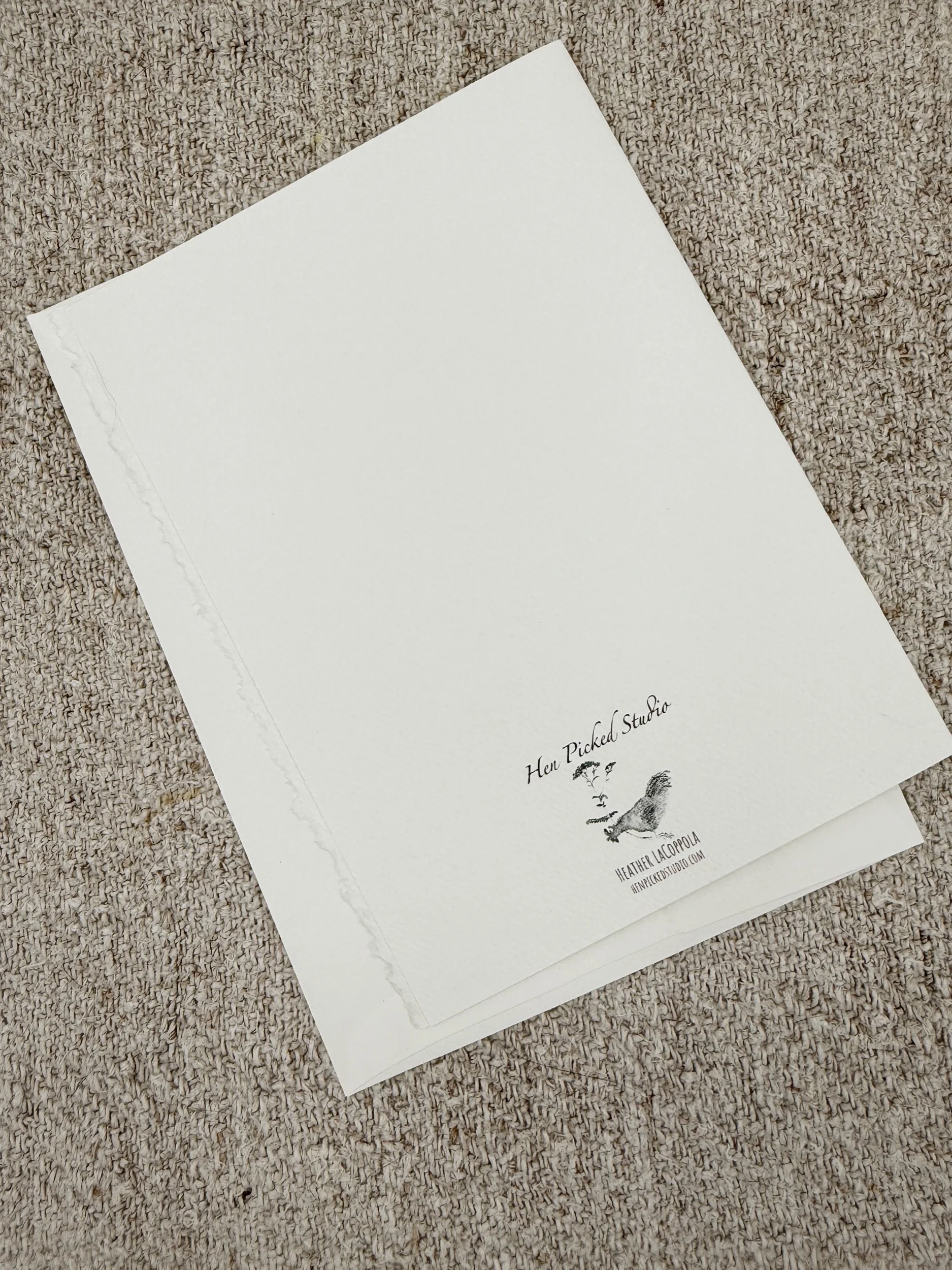 A set of 5 cards with deckle edge envelopes, each depicting a quaint storefront. Each design is from a watercolor painting using a soft palette. The cards have an organic textured feel, like watercolor paper. Inside card is blank for your own inscription.